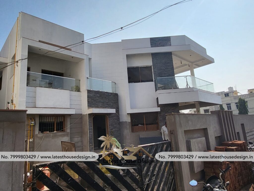 This project highlights how our 3D elevation design perfectly transforms into a real G+1 modern home. Every detail of the elevation—including the balcony railings, façade grooves, textures, and structural lines—has been constructed exactly as visualized in the design. At Latest House Design, we ensure high-accuracy architectural planning, realistic 3D visuals, and results that match perfectly on-site. If you want a modern elevation that gets built exactly the same in real construction, our expert team delivers reliable, high-quality design solutions.